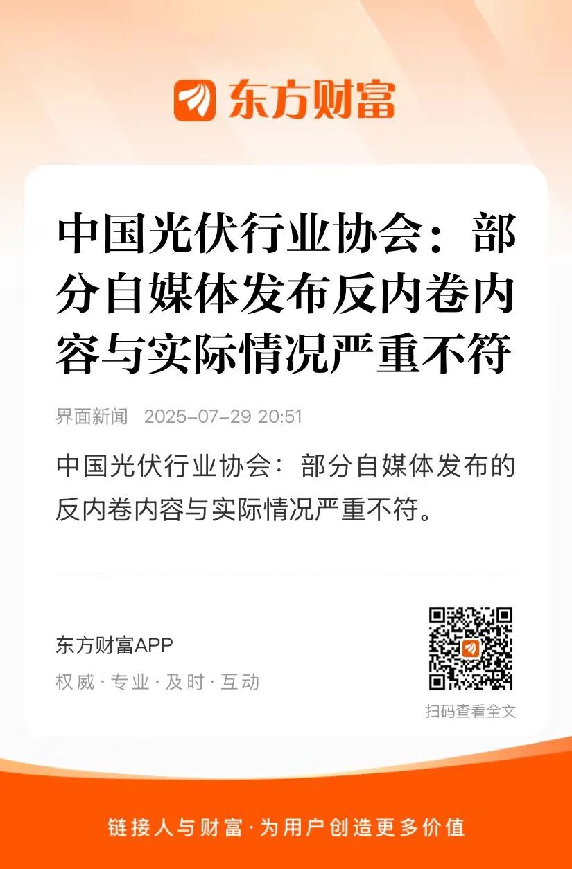 ]article_adlist-->2025年7月29日,中国光伏行业协会针对部分自媒体发布的反内卷内容作出回应,称其与实际情况严重不符。